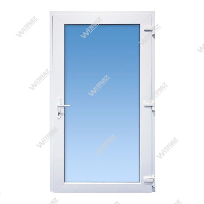 uPVC entrance door with full glass – modern and reliable solution for private houses, offices and commercial premises. The door is made of durable WDS uPVC profile and equipped with a solid glass unit without dividers, giving it a stylish appearance and visually enlarging the space.