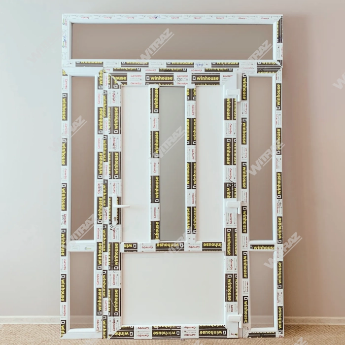 Durvis (3 PVC) + 2 Sānis (stikls + stikls) + Augšēja vitrīna (stikls) cena